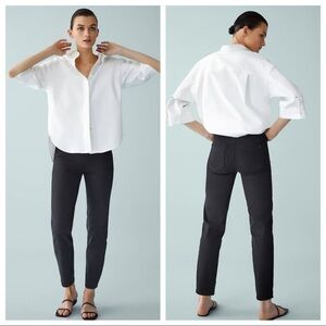 NWT. Massimo Dutti Black Broken Twill Trousers with a cigarette fit, a five pocket design and belt loops. Size 10. Cotton 61%, lyocell 36%, elastane 3%. Ref. 5067/707. Waist 16" flat, rise 10", inseam 29". MD2