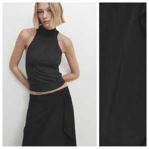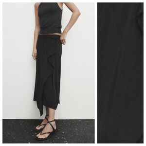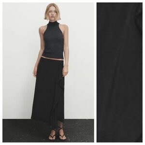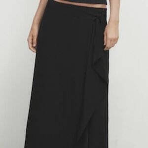 NWT. Massimo Dutti Black Viscose Blend Flowing Wrap Midi Skirt. Size M.