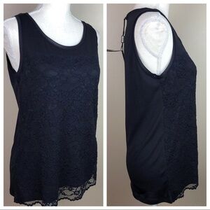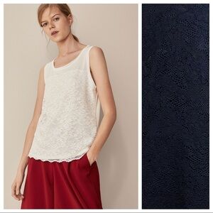 NWT. Massimo Dutti Navy Blue Combined Top with Lace Trim, sleeveless, a straight fit and round neck. Size S. Ref. 6820/716. Pit to pit 16,5" flat, shoulders 12", length 25". MD 3.