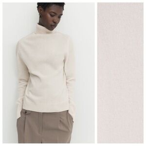 NWT. Massimo Dutti Cream Wool/Cashmere Blend Sweater with High Neck. Size S.