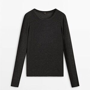 NWT. Massimo Dutti Gray Lyocell/Wool Blend Long Sleeves T-shirt. Size M.
