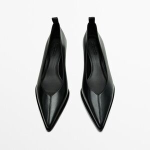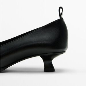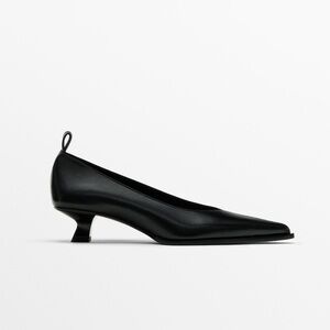 NWT. Massimo Dutti Limited Edition Black Leather Heeled Shoes. Made in Spain. Leather lining. Heel: 5cm. Includes AIRFIT® insole: Flexible technical foam insole, designed to offer greater comfort. To process the return or exchange of this item, you must retain the original packaging. Size 9. Ref. 1480/250. A refined silhouette characterize these geometric-heel shoes with pointed toes. Their crafted details and unique cut make them a basic full of character. SH13