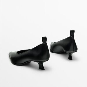 NWT. Massimo Dutti Limited Edition Black Leather Heeled Shoes. Size 9.
