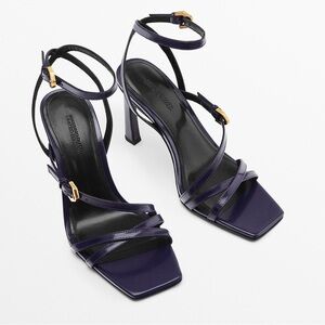 NWT. Massimo Dutti Limited Edition Purple Leather Strappy High-Heel Sandals with Buckle. Heel: 9 cm. Size 6. Ref. 1648/050. SH 13
