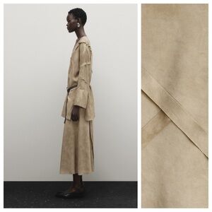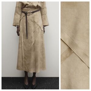 NWT. Massimo Dutti Limited Edition Tan Printed Silk Midi Skirt with Seams Size M