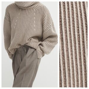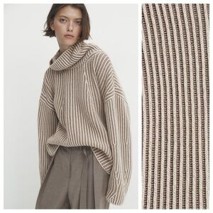 NWT. Massimo Dutti Mole Brown Knit High Neck Sweater with Contrast Thread Size S