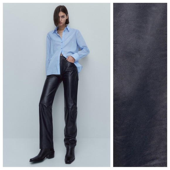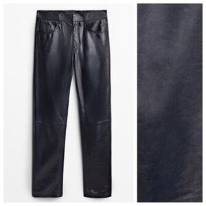 NWT. Massimo Dutti Navy Blue Nappa Leather Trousers. Size M.