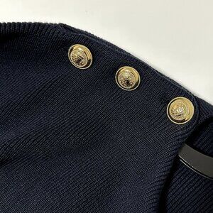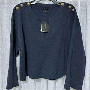 NWT Massimo Dutti Navy V Neck Sweater With Bell Sleeves Gold Buttons Size Small