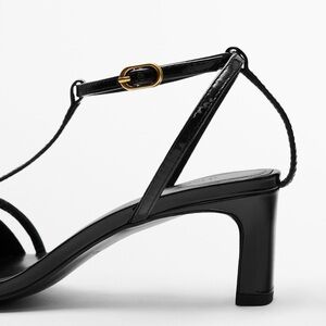 NWT. Massimo Dutti Patent Finish Leather Vamp High-Heel Shoes. Adjustable buckle ankle strap fastening. Leather lining and insole . Heel: 5cm. Includes AIRFIT® insole: Flexible technical foam insole, designed to offer greater comfort. Size 6,5. Ref. 1414/150.