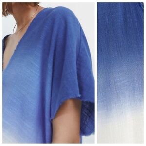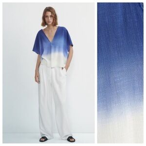 NWT. Massimo Dutti Sky Blue Ombre 100% Cotton V-neck Rustic Shirt with pleat detail on the front, neckline detail at the back, short sleeves, side vents at the hem. Size M. Ref. 5105/845. Pit to pit 23" flat, sleeves 11,5", length 23". MD