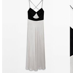 NWT -Massimo Dutti Studio Cream Long Dress With Contrast Detail