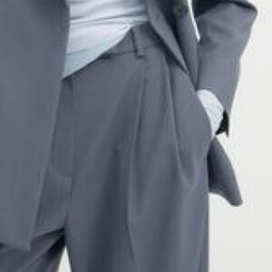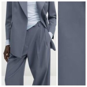 NWT. Massimo Dutti Studio Gray Viscose Blend Darted Wide-Leg Trousers. Size XS.