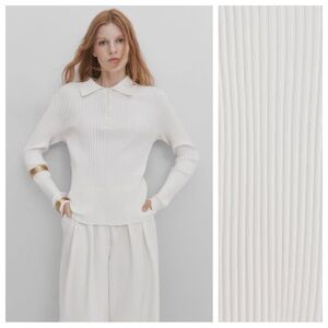 NWT. Massimo Dutti Studio Off White Fitted Ribbed Knit Polo Shirt. Size M.