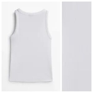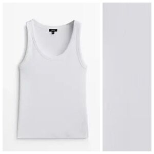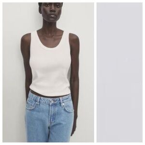 NWT. Massimo Dutti White Cotton Ribbed Fabric Fitted Top. Straps. Crew neck. Size M. Ref. 6201/918. Pit to pit 15" flat, length 23". BS4