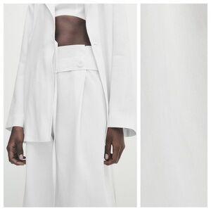 NWT. Massimo Dutti White Wide-Leg Waxed Trousers with Buttoned Strip. Size 6.