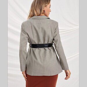 NWT Maternity blazer notched collar gingham with black belt office work elegant