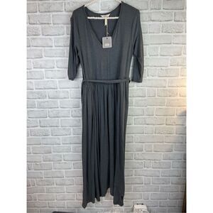 NWT Matilda Jane Go West Maxi Dress Gray Size Small Tie Waist V Neck Cottage