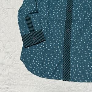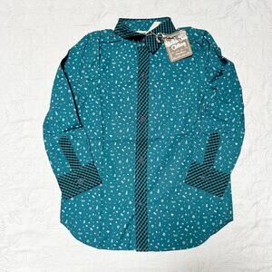 New with tags Matilda Jane Jack Frost long sleeve button up shirt with collar. Mixed prints in blue plaid and holiday snowflake print. Size 6.