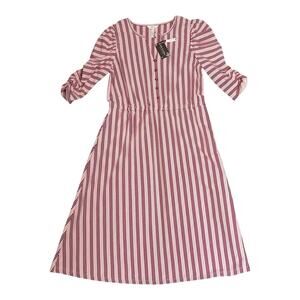 NWT Matilda Jane L Red Pink Stripe Knit Midi Dress Pockets 3/4 Sleeve