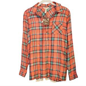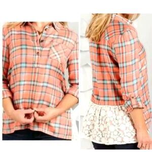 NWT Matilda Jane Noble Tunic Plaid Flannel Lace Popover S