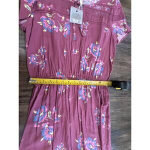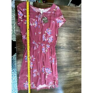 NWT Matilda Jane Pink Cinched Dress W/Floral & Leaves ,Short Mini Sleeve M