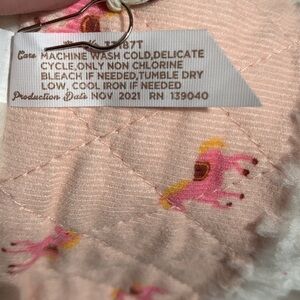 The cutest Matilda Jane print with all the details! For your special cowgirl! All over horse print on a pretty pink quilted soft cotton, lined with Sherpa or flip it with even more cute detailing! Toggle or button closure, southwestern vibes