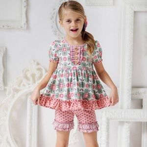 Matilda Jane Jellyfish Shorties. pink polka dots with ruffle hem. From Happy and Free Collection. NWT