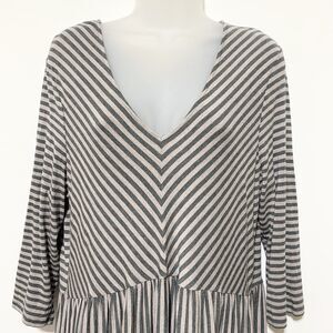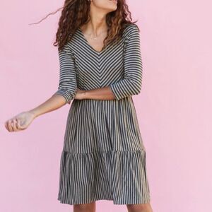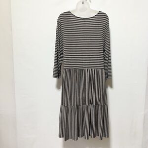 NWT Matilda Jane Size L Dream Chasers Lovely Day Dress Gray Striped 3/4 Sleeve