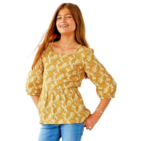 NWT Matilda Jane Top 8 Just Imagine Shay Ditsy Floral Peplum Yellow Girls Size
