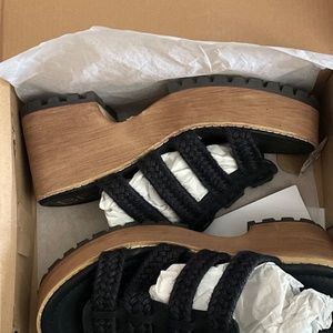 New in box! Never worn super cute platform sandal from Matisse. Vegan, braided jute strap upper on platform tread bottom.