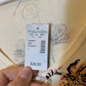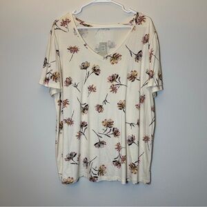 NWT Maurices 24/7 floral v-neck flutter sleeve tee Size 1