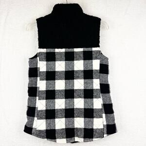 NWT Maurices Black Buffalo Plaid Sherpa Block Full Zip Vest Black/White Size XS
