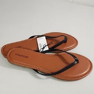 NWT Maurices Black and Brown Minimalist Sandals Flip Flops