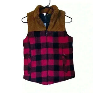 NWT Maurice’s Buffalo Plaid Sherpa Block Vest Sz XS
