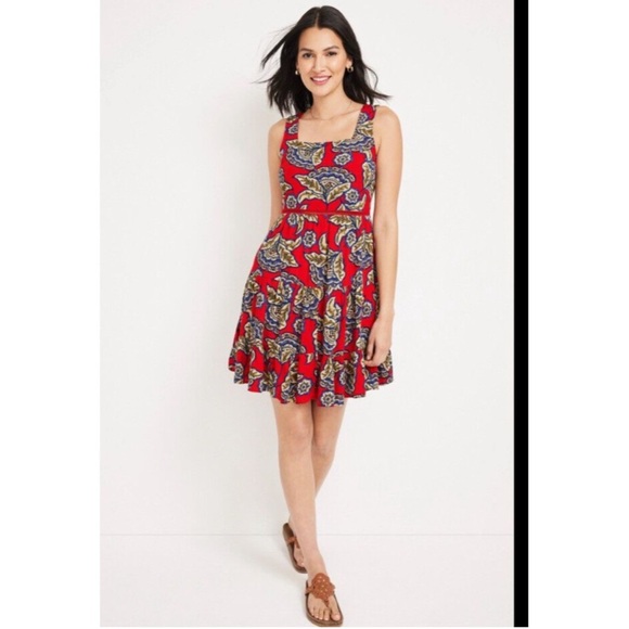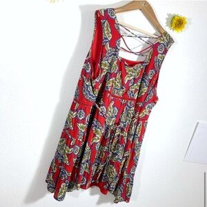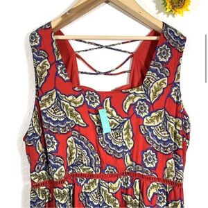 NWT Maurices Floral Red Blue Sleeveless Skater Dress Plus Size 2X Women