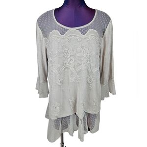 NWT Maurices Light Gray Embroidered Mesh Bell Sleeve Blouse Size XL Women's O31