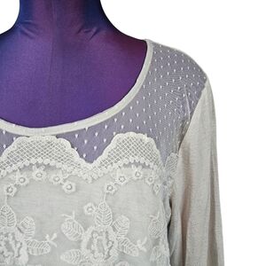 New with tags NWT Maurices Light Gray Embroidered Mesh Bell Sleeve Blouse Size XL Women's.