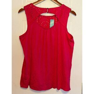 NWT Maurice’s Pink Eyelet Front High Neck Tank Top Size 1X
