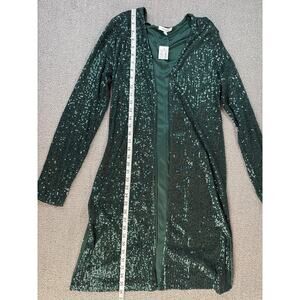 NWT Maurices Sequin Cardigan Long Line Open Front Emerald Green Size XS