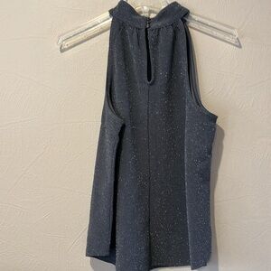 NWT Maurices Sleeveless Gray Metallic Knit Top High Neck Buttons Keyhole Back