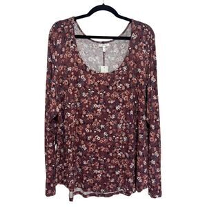 NWT Maurice’s Soft Jersey Long Sleeve Floral Scoop Neck Tee - Size 3X