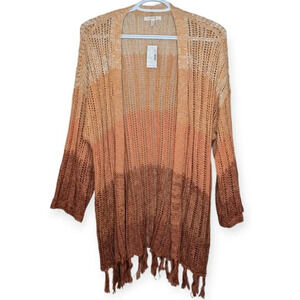 NWT Maurices Sunset Ombre Fringe Open Front Crochet Cardigan Women XS