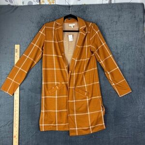 NWT Maurices Sz S Plaid Gold Duster Cardigan Collared Sweater— Long, Relaxed Fit