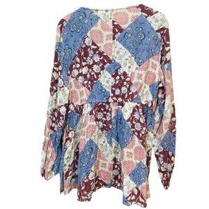 NWT Maurices Tunic Top XXL Rayon Patchwork Purple Print Long Sleeves