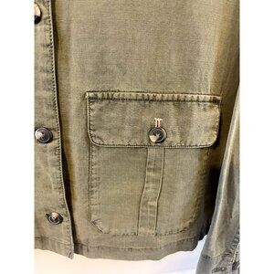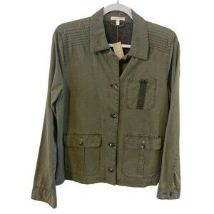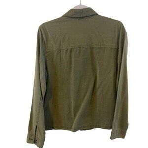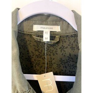 NWT Maurices Utility Shirt Jacket M Olive Green Button up Pockets Stitch detail