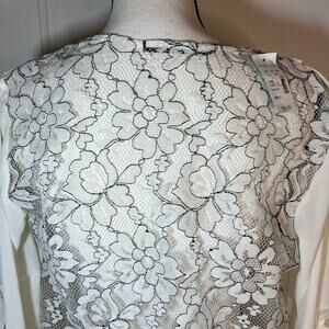 NWT Maurices White Chiffon Drape Front Blouse Lace Back Long Sleeve Size Small