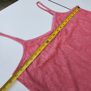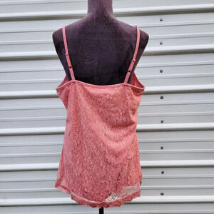 NWT Maurices Womens Cami Tank Top Coral Pink Lined Lace Stretch Boho Plus 1 1X