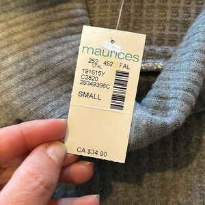 NWT Maurice’s gray soft waffle knit turtleneck long sleeve flowy shirt size small