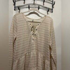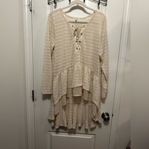 NWT Maurice’s pointelle high low lace up duster top size 1X cream boho