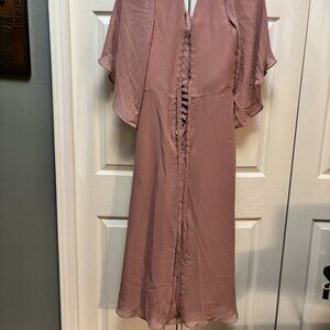 Formal dress, mauve dress, evening gown, flutter sleeve dress, mother of the bride dress, dusty rose formal, rhinestone accent dress, special occasion dress, size 16